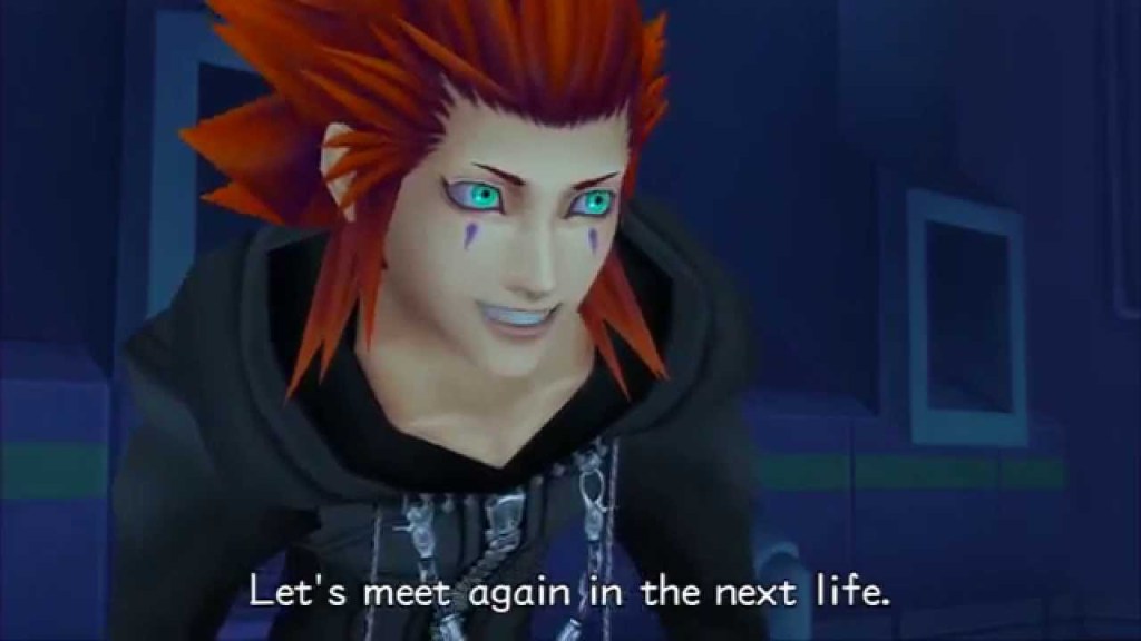 We love a long and dramatic character death. After unleashing a powerful attack to help out Sora and friends, junior hero Axel begins to fade away. As he’s lying on the floor of a strange void world, he begins to tell Sora that Roxas is the only person who made him feel like he had a heart. That’s exactly why he sacrificed himself to make sure Sora could continue his journey. He did it for Roxas.